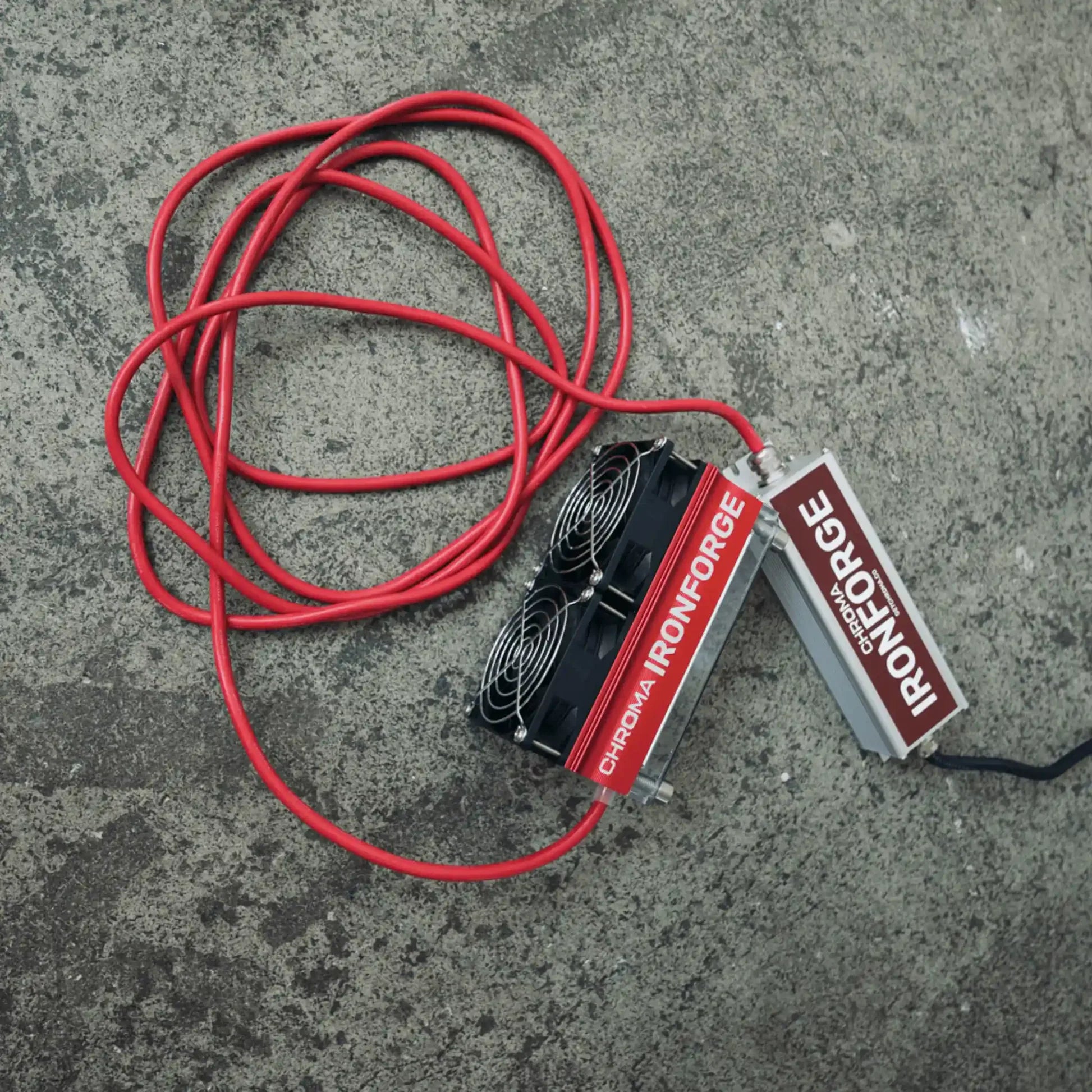 Settu Ironforge í samband og kveiktu á því. Tækið fer strax að gefa frá sér öflugt rauð- og innrauðljós — engar flóknar stillingar, bara einfaldur kraftur.