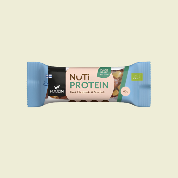 NUTI próteinstykkin frá FOODIN eru hrein, lífræn og heilsusamleg stykki sem innihalda 9 grömm af hágæða plöntupróteini í hverju stykki. Plöntupróteinið kemur frá lífrænu bauna og hrísgrjónapróteini sem innihalda saman allar nauðsynlegar amínósýrur. Stykkin innihalda einnig yfir 50% hnetur og lífrænt hunang.